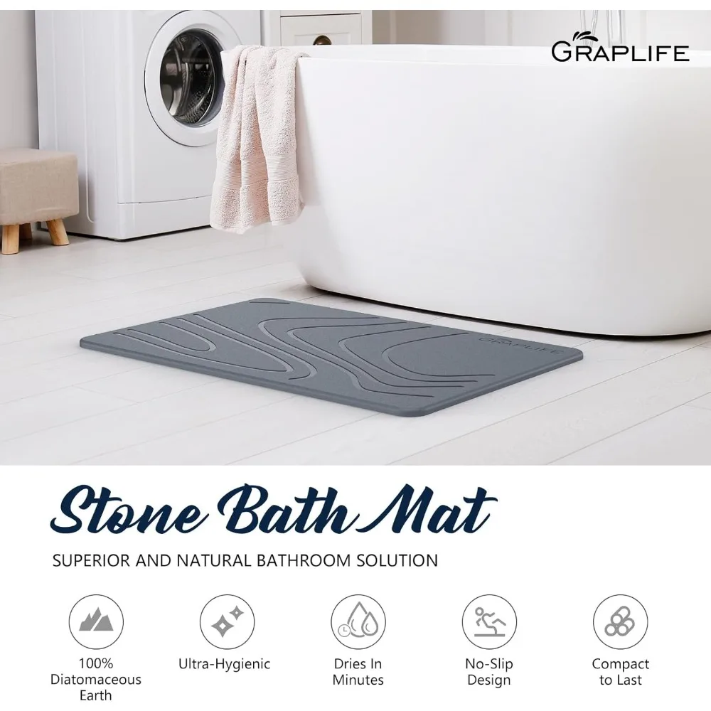 - Dry Up Quickly - Stop getting the bathroom wet. Step onto our nonslip stone bath mat and dry your feet quickly! Made with natural diatomite, it absorbs water and makes it evaporate in no time.